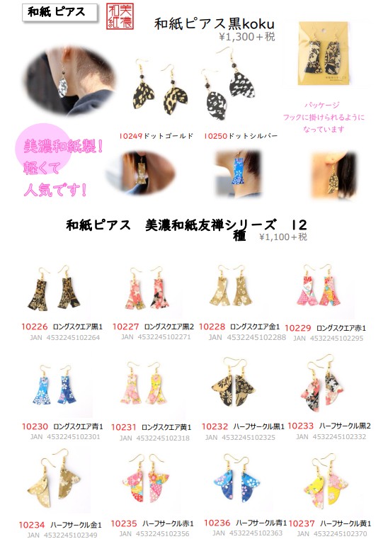和紙アクセサリー 和紙雑貨  とても軽く美しい 美濃和紙ピアス ブローチ