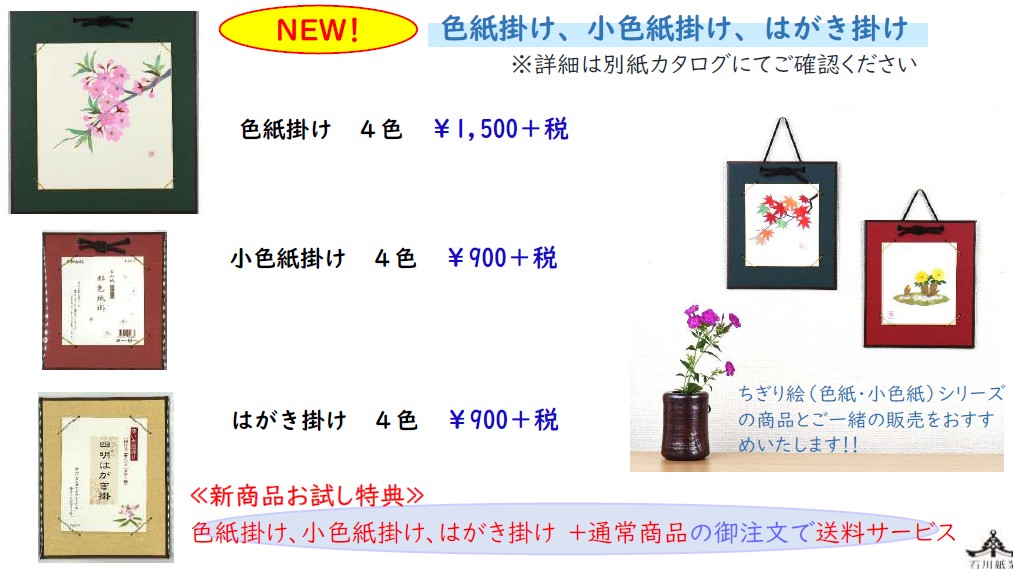 創業1902年石川紙業(株)全カタログがダウンロードできます!1902年創業石川紙業の手作り技術で創作した、オリジナル和雑貨は、どの製品も本当に労力と時間がかかる手作り製品です。材料や角度が微妙にちがえば、それに合った形で作り、表情を描きます。品質は同じでも、ひとつとして同じ製品はなく、ひとつひとつ輝いています。
