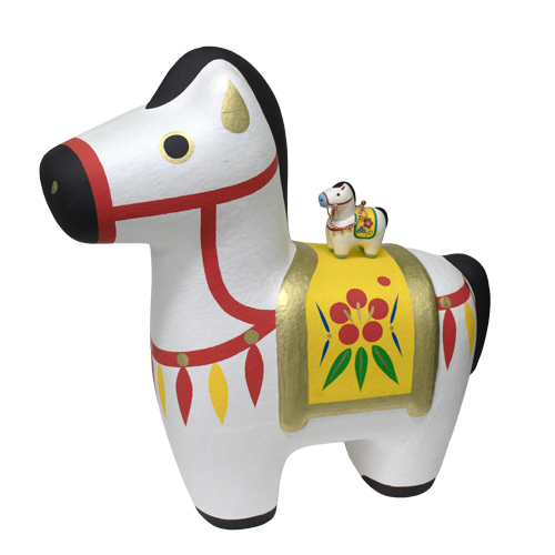 手作り起き上がりこぼし人形、美濃和紙ころころ「白馬」単品。