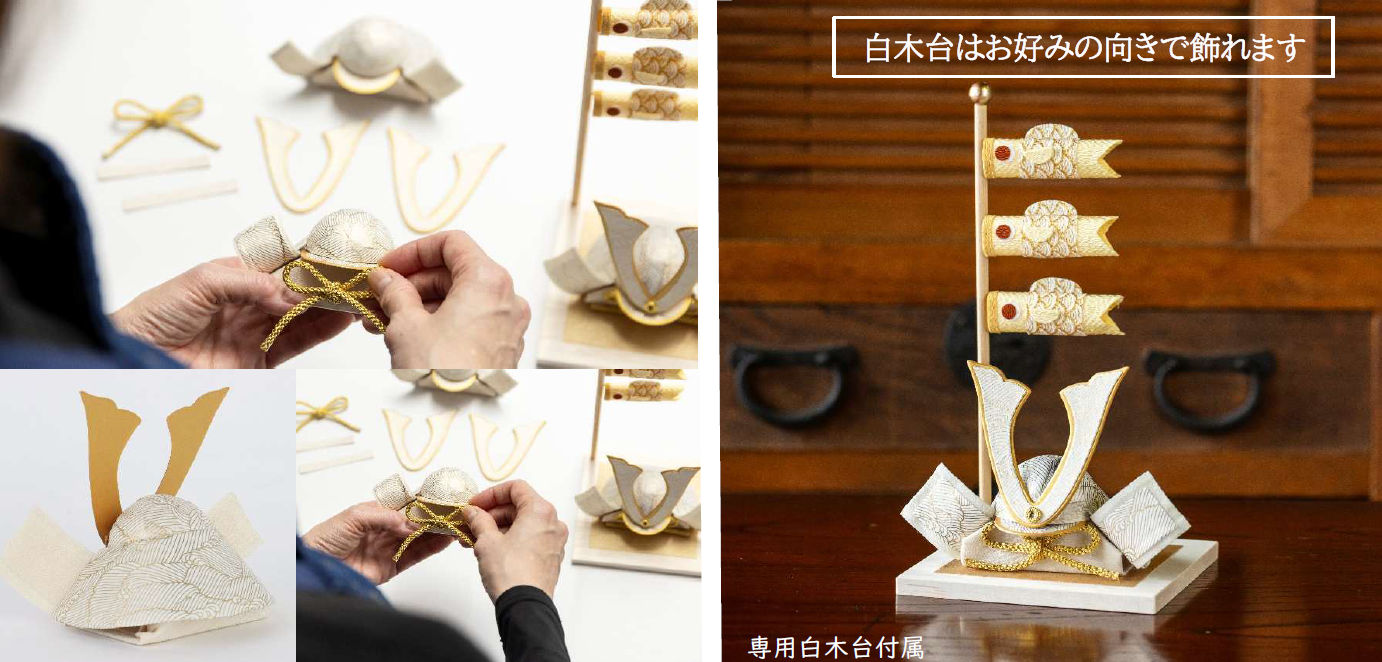 起き上がり人形×1、和紙パーツ×3、金クラフト紙台×1