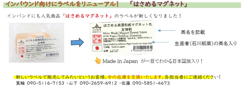 ■新企画!インバウンド向けに商品ラベルを一新! 「はさめるマグネット」 などの 人気インバウンド商品のラベルリニューアル!