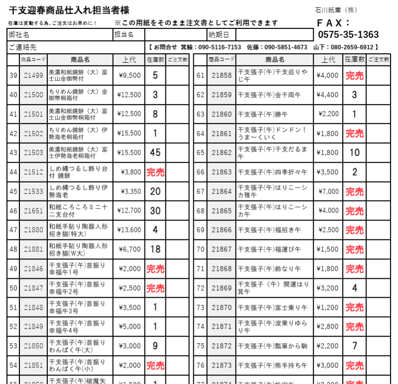 石川紙業 直営店 人気ランキング発注書がこちら↓↓