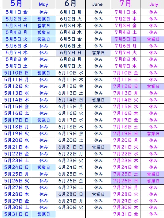 美濃和紙雑貨体験ショップ2026年5月・6月・7月の営業スケジュール