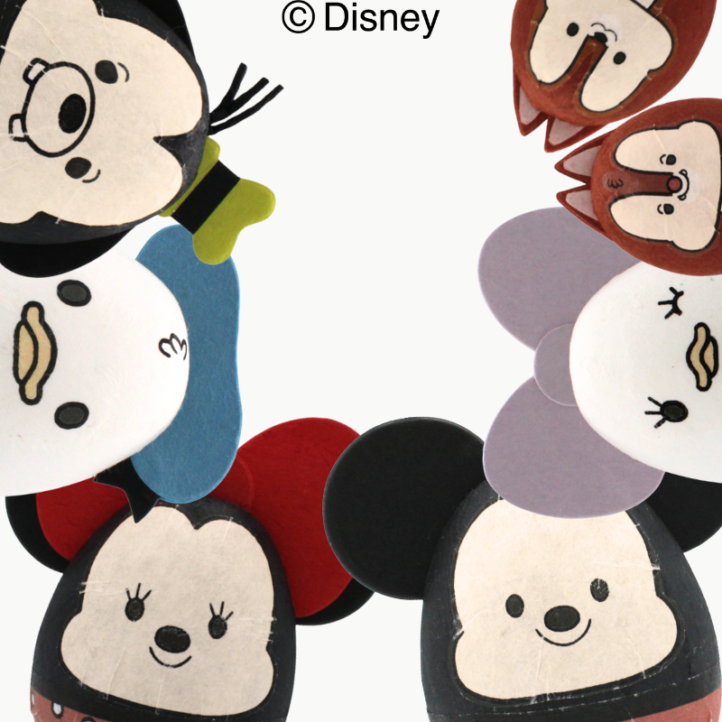 何度も倒れてもコロコロと立ち上がる姿は、「げんきもの」のミッキーを連想させます。世代を超えて笑顔を届けてきたミッキーマウスの明るさと、和紙が持つあたたかなさ重なります。創業1902年の石川紙業で受け継がれた技術によって作られた、めでたさあふれるアイテムです。