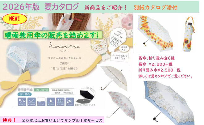 ■カタログ案内!「夏カタログ2026」完成! 新商品日傘、うちわ新柄、ころころ夏の動物たち等、盛りだくさん♪