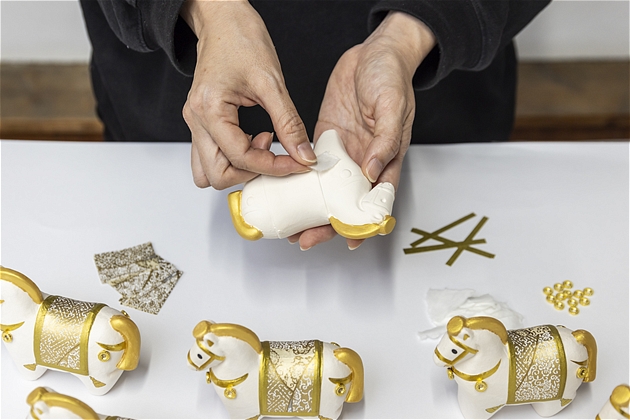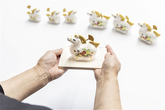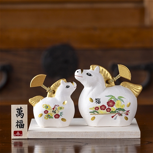 石川紙業の手作り干支午2026 美和紙貼り陶器人形、和紙張子。干支を一年を通して飾ることで、万障を防ぎ、萬福を招きます。