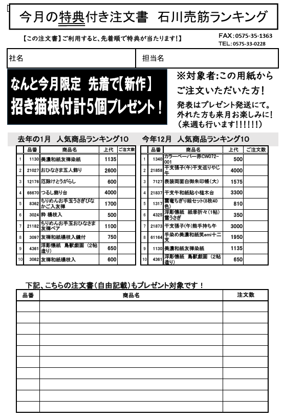 ・通知大家!石川紙業的干支商品!好評熱賣中,庫存也所剩不多!